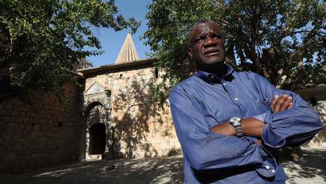 Dans la cour du temple de Lalich, situé à une soixantaine de kilomètres au nord de la ville septentrionale de Mossoul, Denis Mukwege serre cérémonieusement la main de Baba Cheikh, la barbe blanche, vêtements et coiffe de la même couleur, assis sur un matelas aux couleurs chatoyantes.