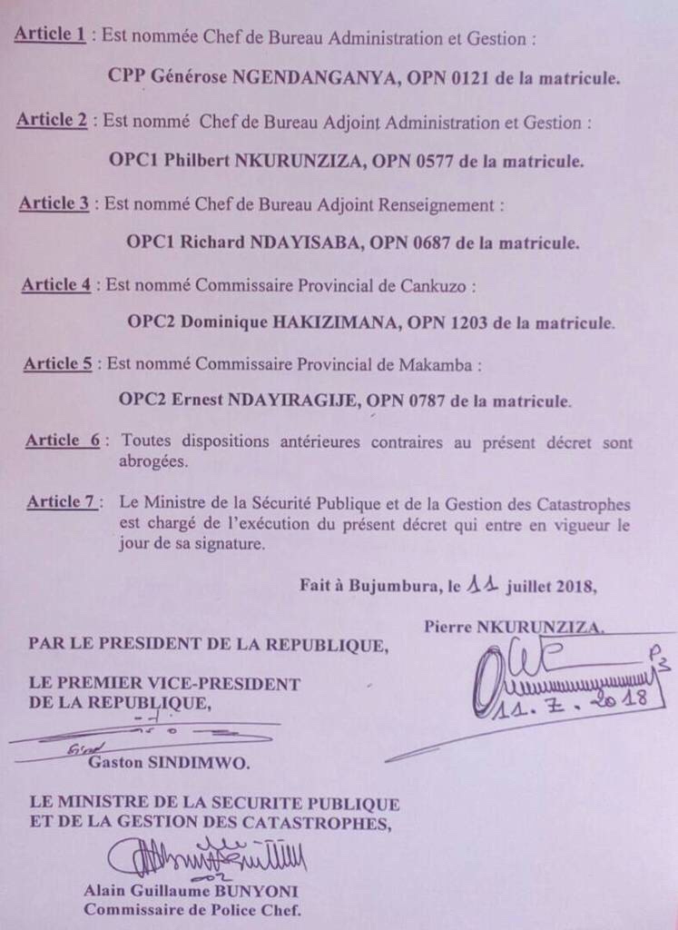 Abisezerano Plusieurs nominations au sein de la Police Nationale du Burundi (décrets présidentiels) Lien12 juillet 2018 Ihanga ry-Imana Plusieurs nominations au sein de la Police Nationale du Burundi (décrets présidentiels) Partager : Partager sur X(ouvre dans une nouvelle fenêtre) X Partager sur Facebook(ouvre dans une nouvelle fenêtre) Facebook Partager sur LinkedIn(ouvre dans une nouvelle fenêtre) LinkedIn Partager sur Telegram(ouvre dans une nouvelle fenêtre) Telegram Partager sur WhatsApp(ouvre dans une nouvelle fenêtre) WhatsApp Envoyer un lien par e-mail à un ami(ouvre dans une nouvelle fenêtre) E-mail Imprimer(ouvre dans une nouvelle fenêtre) Imprimer J’aime chargement… Similaire