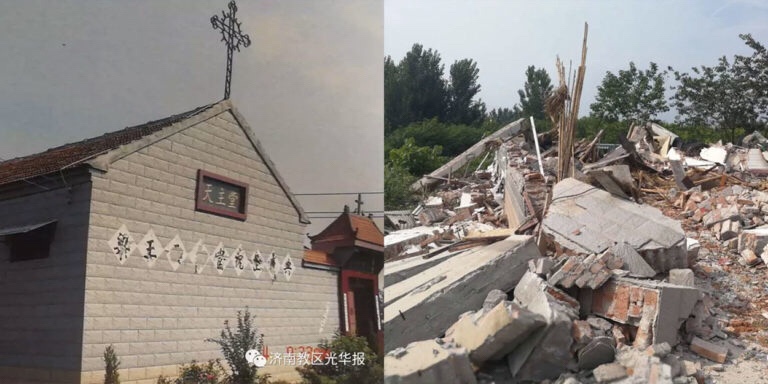 Chinese Christian Fellowship of Righteousness, un groupe américain qui met en lumière la persécution des chrétiens en Chine a diffusé des photos du bâtiment avant et après sa destruction.