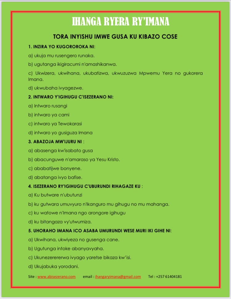 Tanga inyishu kuri email : ihangaryimana@gmail.com canke WhatsApp Tel : +257 61404181