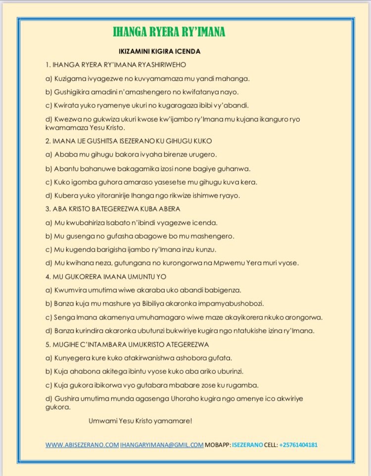 WWW.ABISEZERANO.COM IHANGARYIMANA@GMIL.COM MOBAPP: ISEZERANO CELL: +25761404181