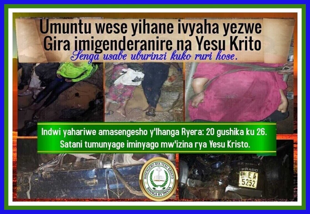Muri ibi bihe umuntu wese afise amaso yo kubona no gutahura arabona yuko hagezeko abizera Imana bose bihana ivyaha bakora, bakezwa kugira ngo basenge Uhoraho Imana kuko igihe ari iki. Natwe mw’Ihanga Ryera ry’Imana dufise amahirwe yo kugendana n’Imana ikaturongora muri vyose. Niyo yadutumye gutumurira abantu bose aya masengesho.