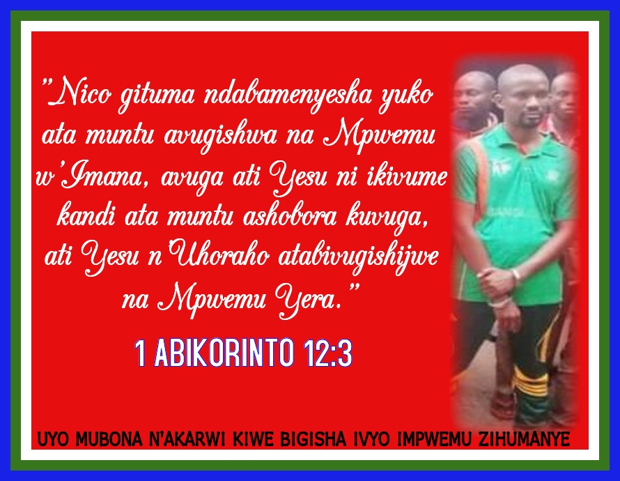 “Nico gituma ndabamenyesha yuko ata muntu avugishwa na Mpwemu w’Imana yovuga ngo Yesu Kristo ni ikivume, kandi ata muntu yoshobora kuvuga ati Yesu Kristo n’Uhoraho atabivugishijwe na Mpwemu Yera.” [1ABIKORINTO 12:3]