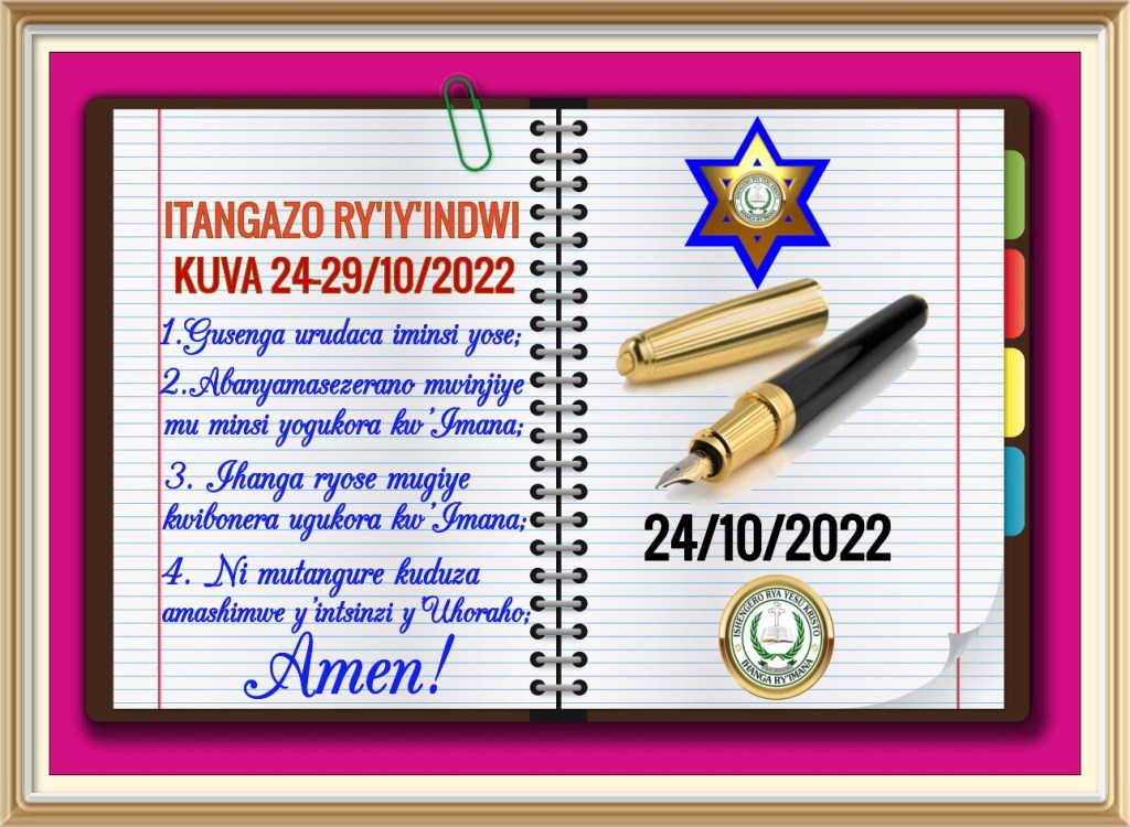 ITANGAZO RY’IY’INDWI KUVA KUWA 23 GUSHIKA KUWA 29/10/2022: AMASENGESHO Y’AGATONDO NO KUMUGOROBA