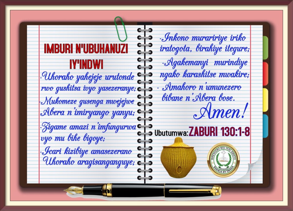 Umuntu wese asuzume umutima wiwe, ibikorwa vyiwe n’imvugo ziwe. Asanze ata caha canke ijwi rimwagiriza ikibi aheze asenge ati : “Mana shitsa ivyo wadusezeraniye.” Uhoraho Imana irakunda abo yaremye kandi ibafitiye umugambi mwiza. Ico idusaba gusa ni ukwizera n’ukwezwa maze tukayisaba ivyiza yadusezeraniye.