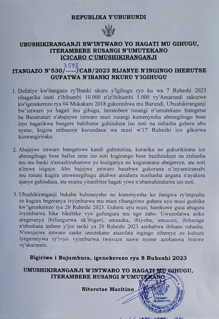 Abantu benshi baguma bahanahana utureresi tw’amajambo yavuzwe n’umukuru w’igihugu c’Uburundi kuvyerekeye guhindura ibikaratasi ababitse amafaranga menshi mu mazu yabo. Impande yo gusakaka mu mazu y’abategetsi bamwe bamwe bakoranye cane na Président Nkurunziza ngo barondera gufata ayo mafaranga babitse mu mazu hanyuma iryo saka rikaba rishobora kuba ritatoye ayo mafaranga, Ibanki Nkuru y’igihugu yatangaje yuko ihinduye inoti z’ibihumbi icumi n’izibihumbi bitanu.