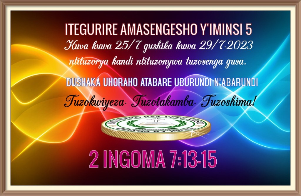 Hariho imirwi y’abanyamadini n’abanyamigenzo batazi yuko Abera b’Imana bama kira mwaka bafata indwi yo kwisonzesha basengera igihugu c’Uburundi n’amasezerano Uhoraho Imana yakivuzeko. Uyu mwaka amasengesho azomara iminsi itanu, kuva kwigenekerezo rya 25 gushika kw’igenekerezo rya 29 uku kwezi. Ntimwoshwe n’abatabitahura kandi bibaza yuko boyatesha abandi. Ntihagire uwugutesha kwifatanya n’Ihanga ryose ry’Uburundi gusengera igihugu cawe.