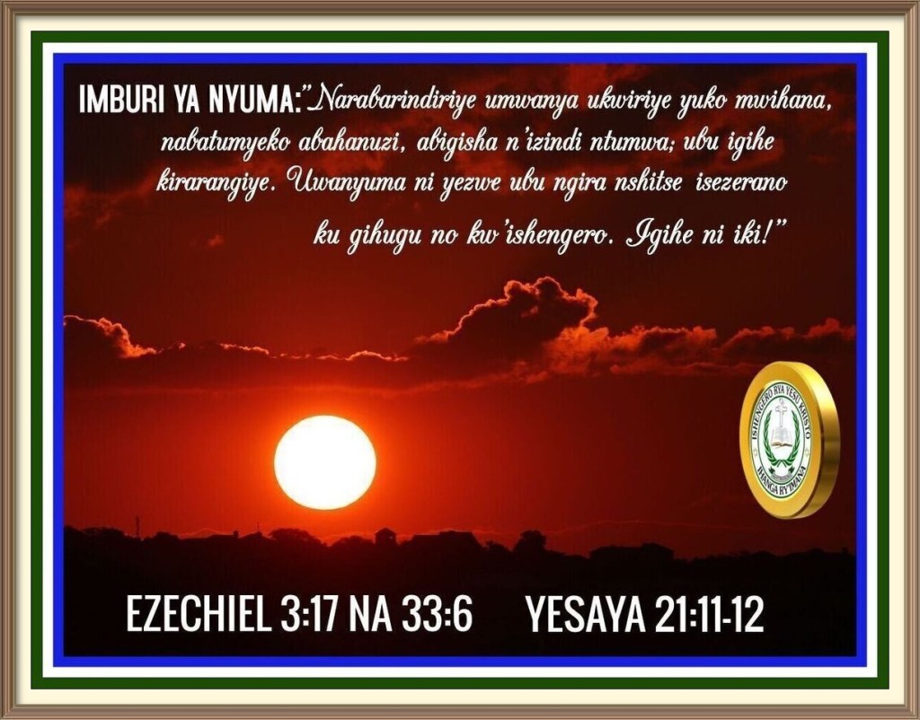 Hanga Ryera ry’Imana mwihanye mukezwa mukaba murindiriye isezerano ry’igihugu co mw’ijuru n’isezerano ry’igihugu c’Uburundi, Umumarayika w’Uhoraho yururutse kuvugana n’abo yatoranije agira ati: « Iryavuzwe riratashe, Ihanga ry’abera rigire rishike muri ya masezerano y’igihugu n’ishengero mwahora mwumva. »