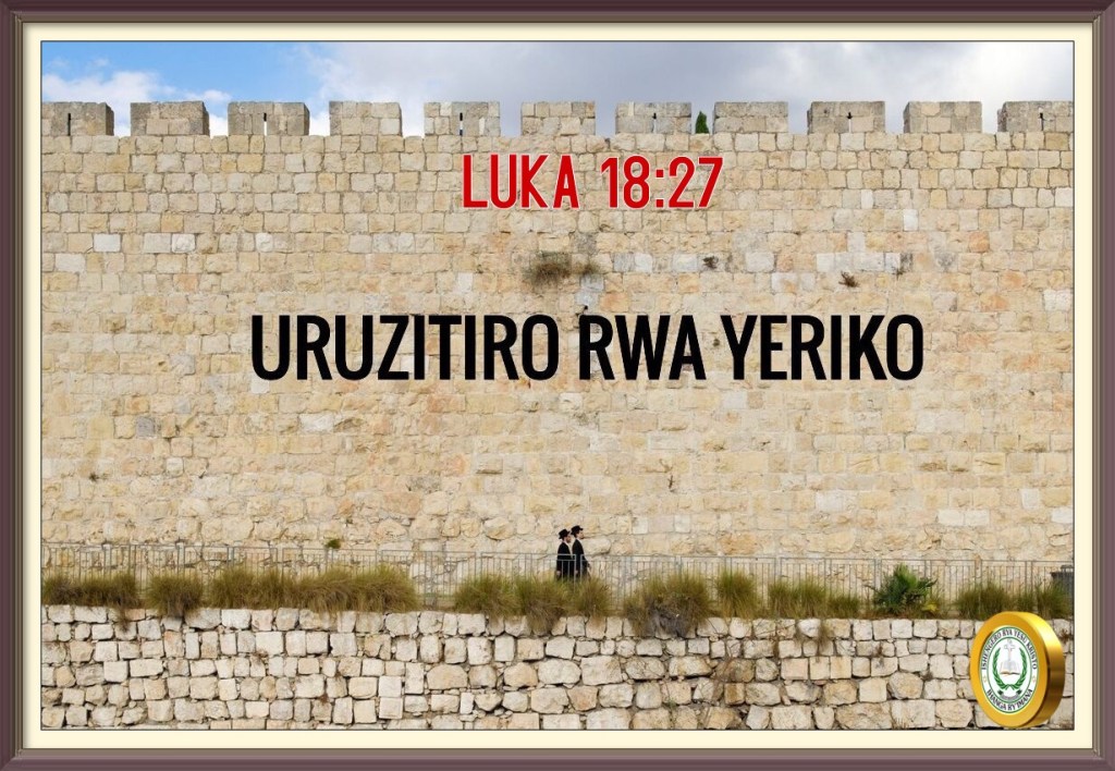 Nkuko tubisanga mu gitabo ca Yosuwa, Yeriko carico gisagara c’abanya Kanani, abisirayeli bashikirako bahejeje kujabuka Yorodani rubanje gukama bakajabuka hanyuma rugaca rusubira guterana. Ico gisagara cari kizengurutswe n’ibihome vy’amabuye binini kandi birebire bikingira ico gisagara ku buryo ata muntu n’umwe yashobora ku vyurira ngo ashike hejuru ngo ashobore kwinjira canke ngo asohoke ico gisagara. Inzugi zinjira mur’ico gisagara zari zugaje ibihindizo kugira ngo ntihagire umunyesirayeli canke uwundi mwansi abinjirana. Kw’ihanga rya Isirayeli, iki cari igihe gihambaye co kubona yuko koko Isezerano Imana yabahaye ribaye ukuri naho bari barabonye ibindi bitangaza nko ku kiyaga gitukura, nka manu mu bugaragwa, nk’inzoka y’umuringa, nk’igicu cabamurikira mw’ijoro kikabakingira izuba ku murango na yorodani ikama imbere yabo. Ivyo bari barabibonye mugabo bari bakeneye kubona igitangaza co kwinjira mu gihugu c’Isezerano nyezina kugira ngo bive mu buvugishwa bibe ukuri kwo mu buzima bgabo bga minsi yose. Ubgo ntavyo ubona nk’ibisika binini bikomeye n’inzugi zugaje ibihindizo vyivyuma mu gihugu, mw’ishengero no mu buzima bgawe? Imana iragiye kubisenyurira hasi bicike umukungugu gusa mu kanya gato. Na twebge hari ibihambaye Imana yadukoreye mugabo turagomba kubona ishitswa ry’amasezerano nyezina.