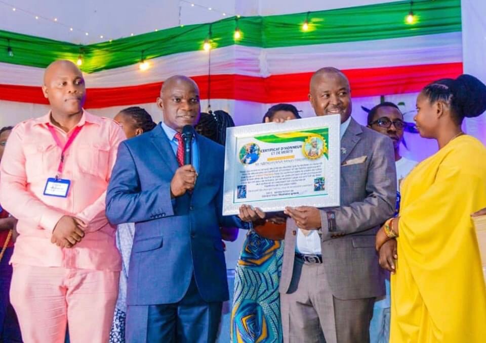 LE PRIX D’HONNEUR ET MÉRITE PATRIOTIQUE décerné au chanteur du peuple Felicien Nsengiyumva Minani alias Maréchal_Femidejabat, l’un des gardiens des traditions culturelles burundaises lors de l’inoubliable célébration culturelle dans la FONDATION FEMIDEJABAT.