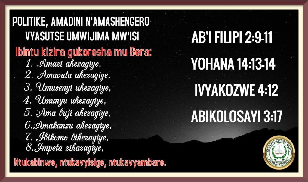 Ikigeretseko mur’abo basuma harimwo abiyitirira ishengero rya Yesu Kristo-IHANGA RY’IMANA bihaye amazina y’ivyubahiro nka Mukama, Musenyeri, Bishop, uwigitinyiro, Reverand n’ayandi. Bahinduye ingoro y’Imana akaguriro.